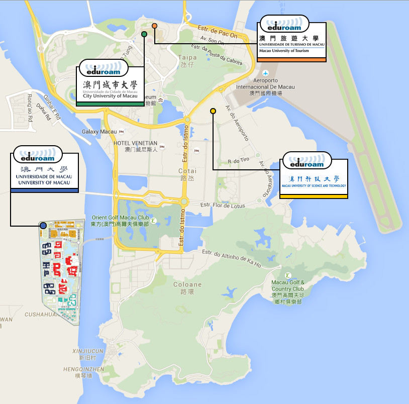 The following shows the institutes in Macao which joined eduroam MO.